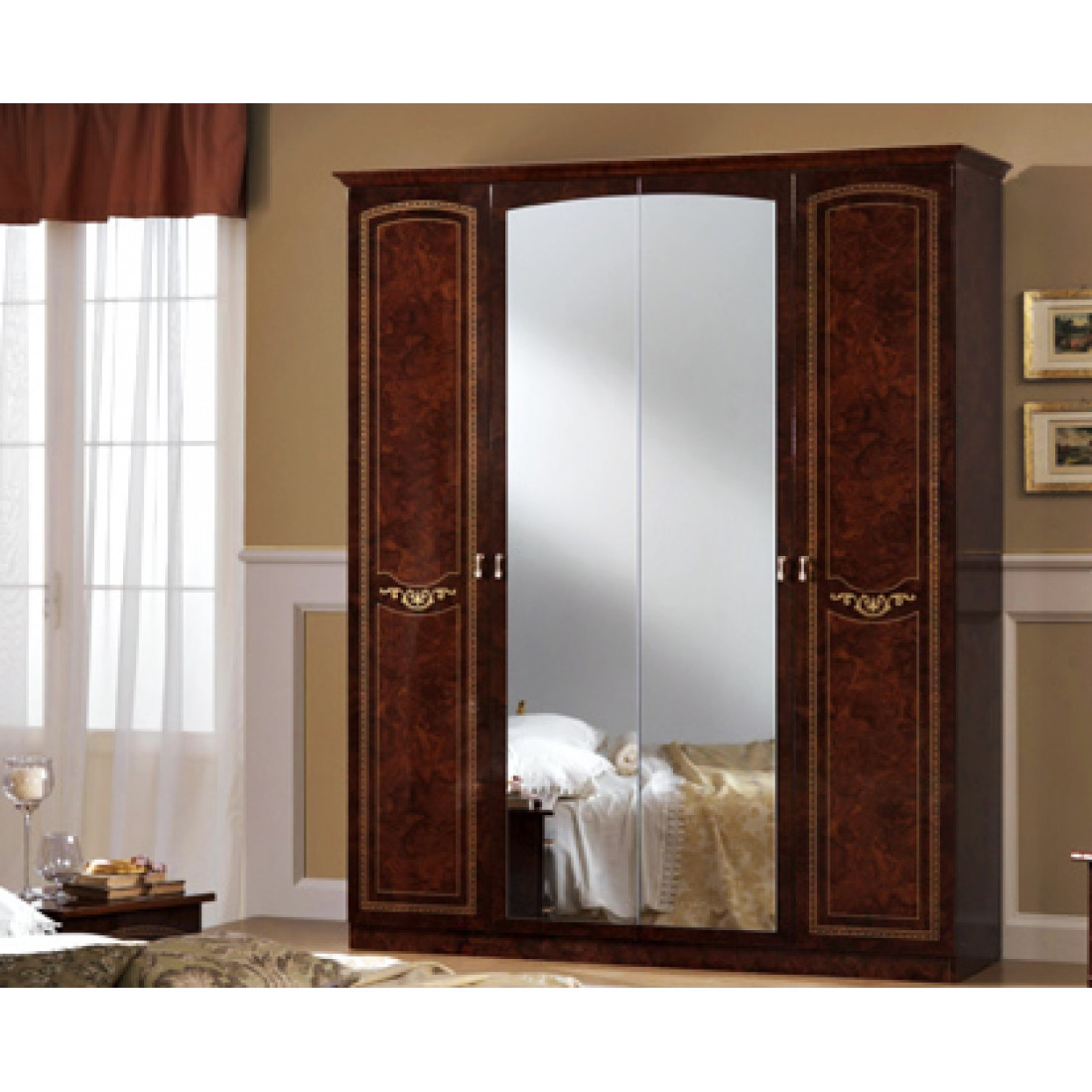 Четырехстворчатый шкаф Ирина (орех) от Российской фабрики «ДИА мебель» выполнен в ореховом цвете в сочетании с глянцевым покрытием. Не смотря на свои размеры, он не займет много места и удивит своей вместимостью. Такой большой шкаф с зеркалом сделает комнату светлее и просторнее. Коллекция "Ирина" предназначена для настоящих ценителей классического стиля.