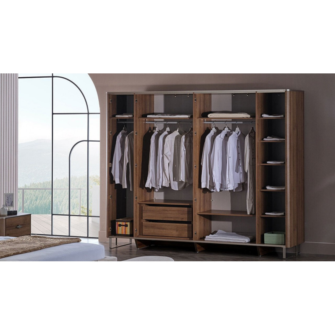 с полками,со штангой,каленое стеклоМатериал корпуса